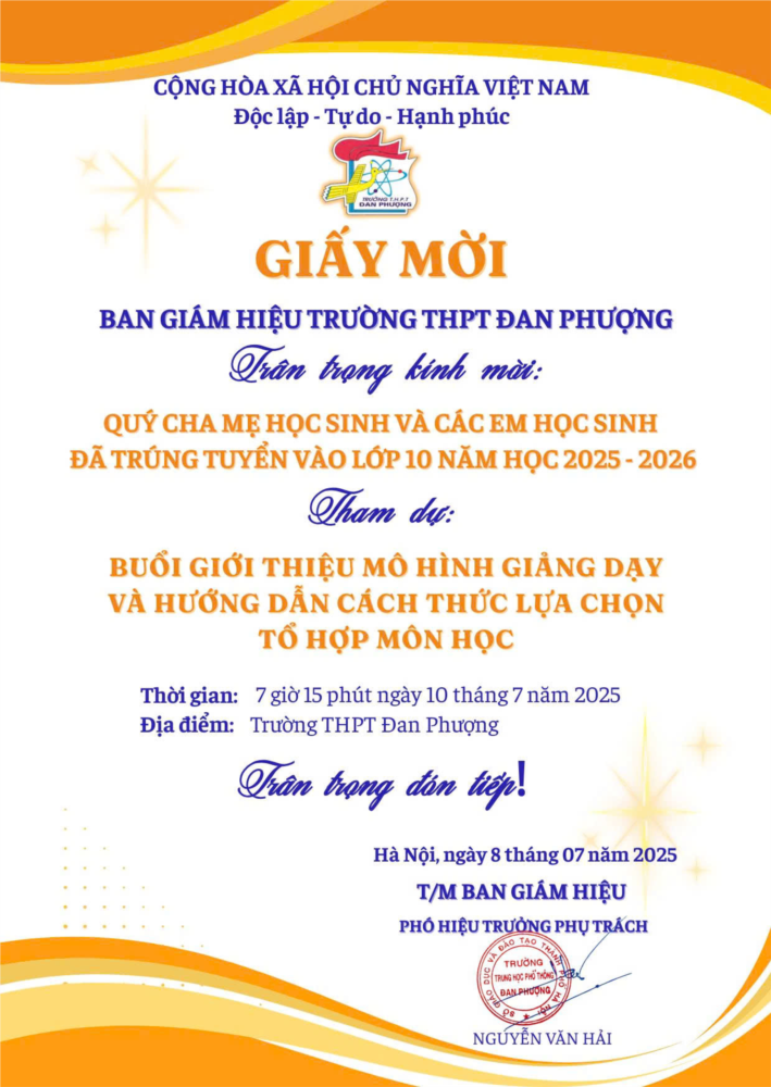 🌻Trường THPT Đan Phượng trân trọng chúc mừng các em học sinh đã trúng tuyển vào lớp 10 năm học 2025 – 2026. Hành trình học tập mới sắp bắt đầu, và nhà trường rất vinh dự được đồng hành cùng các em trong chặng đường 3 năm quan trọng của tuổi học trò!