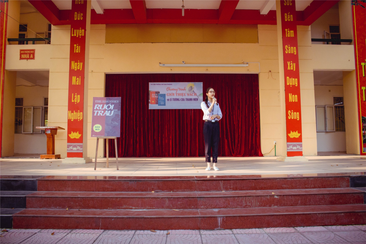 Buổi giới thiệu sách đã đem đến hai cuốn sách vô cùng thú vị và đầy ý nghĩa. Cuốn sách đầu tiên mà thư viện trường muốn gửi tới các em học sinh là cuốn “Ruồi Trâu” của tác giả Ethel Lilian Voynich do bạn Nguyễn Minh Hà, học sinh lớp 10A1 trình bày. Với giọng to, rõ ràng, truyền cảm và bầu nhiệt huyết sôi trào, Minh Hà đã khiến bao trái tim trẻ của THPT Đan Phượng cảm thấy mình cần phải có những ước mơ, những hoài bão. Và hàng ngày, hàng giờ phải cháy hết mình cho những hoài bão, những ước mơ đó bay cao.