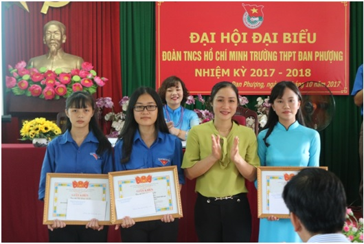 Đ/c Tạ Thị Vân Hà thay mặt đoàn CT tuyên bố lý do, giới thiệu đại biểu, khai mạc Đại hội và báo cáo tổng kết công tác Đoàn, phong trào Đoàn thanh niên trường THPT Đan Phượng nhiệm kỳ 2016-2017, phương hướng, nhiệm vụ công tác Đoàn nhiệm kỳ 2017-2018