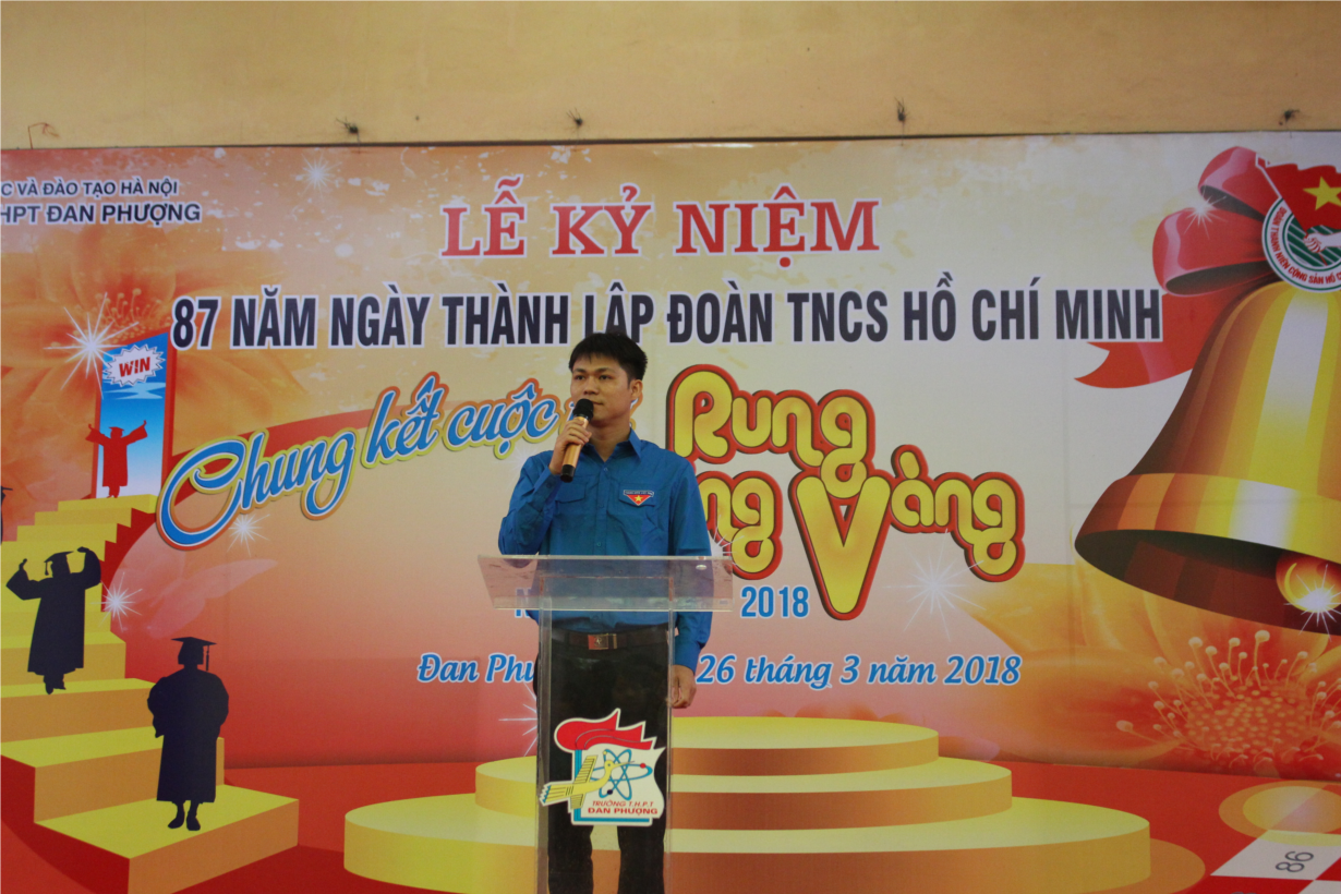 Buổi chiều cùng ngày, được sự đồng ý của Chi ủy, BGH, Đoàn TNCS Hồ Chí Minh trường THPT Đan Phượng đã tổ chức cuộc thi “Chung kết Rung chuông vàng trường THPT Đan Phượng năm học 2017-2018”. Cuộc thi là hoạt động có ý nghĩa giáo dục cao, góp phần đẩy mạnh phong trào“Thi đua dạy tốt - học tốt”, từng bước nâng cao chất lượng giáo dục toàn diện cho học sinh. Sau một thời gian dài “cân não”, đoàn viên Nguyễn Trí Dũng chi đoàn 11A9 đã rung được chuông vàng và trở thành nhà vô địch của cuộc thi năm nay.
