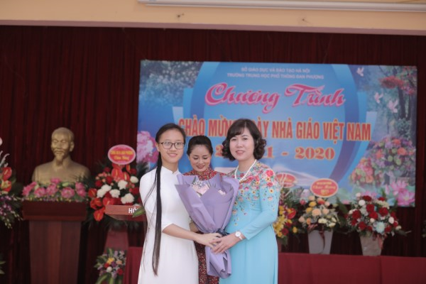 Để bày tỏ lòng biết ơn sâu sắc của các bậc phụ huynh và các em học sinh đối với thế hệ các nhà giáo, ông Tạ Văn Thông - trưởng Ban đại diện cha mẹ học sinh của nhà trường và em Nguyễn Thảo Nguyên- Chi đoàn 12A3 đã đại diện cho các bậc phụ huynh và học sinh toàn trường lên phát biểu và tặng hoa chúc mừng các thầy giáo, cô giáo.